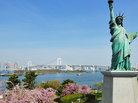 远眺东京塔、彩虹大桥,台场海滨公园坐落在东京湾中,日本最大的民营电视台——富士电视台就将台址选在了这里,我们还可以看到自由女神,这座自由女神,虽说比起美国的要小很多,但也是法国赠送给日本的。 | |||